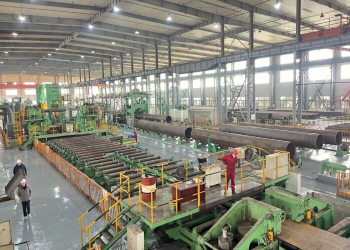 Ultrasonic plate probing → edge milling → pre-bending → forming → Pre-welding → Internal welding→ External welding → Ultrasonic inspection→ X-ray inspection → Expanding → hydraulic test →l. Chamfering → Ultrasonic inspection→ X-ray inspection→ magnetic particle inspection at tube end.