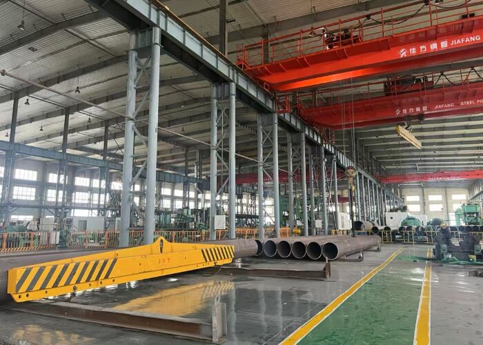 Ultrasonic plate probing → edge milling → pre-bending → forming → Pre-welding → Internal welding→ External welding → Ultrasonic inspection→ X-ray inspection → Expanding → hydraulic test →l. Chamfering → Ultrasonic inspection→ X-ray inspection→ magnetic particle inspection at tube end.